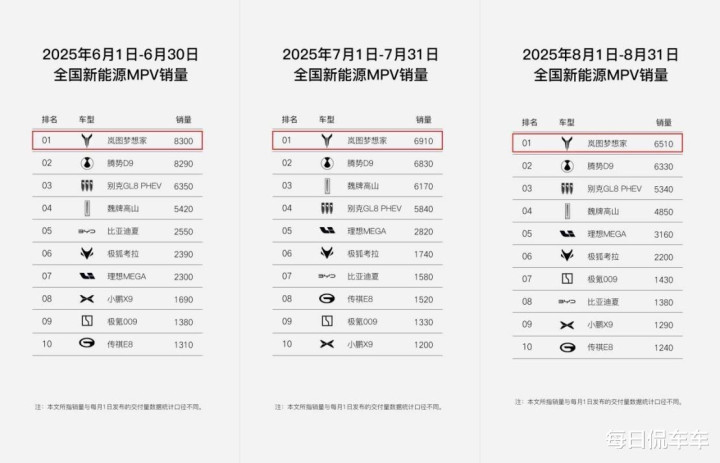 9月15日,2026款岚图梦想家上市,发布了鲲鹏和乾崑两大智能化系列,提供PHEV和EV两种动力模式共8个配置版型,官方指导价区间为32.99—43.99万元。新车上市后18小时大定突破10000台,其中顶配乾崑Ultra版订单占比超50%,充分说明2026款岚图梦想家的高端化之路取得成效。事实上,在今年6月到8月,岚图梦想家已经连续三个月夺得全国新能源MPV销量冠军。当然,针对不断变化的用户需求,新车也在快速升级产品去适应。