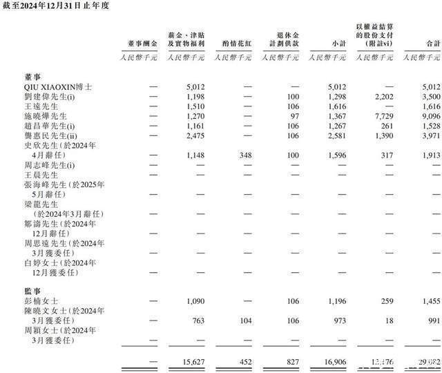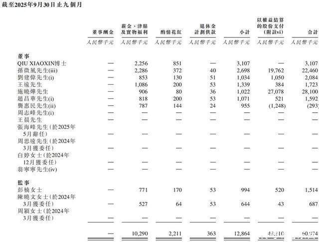 2024年及2025年1-9月,爱芯元智董事及监事酬金如下: