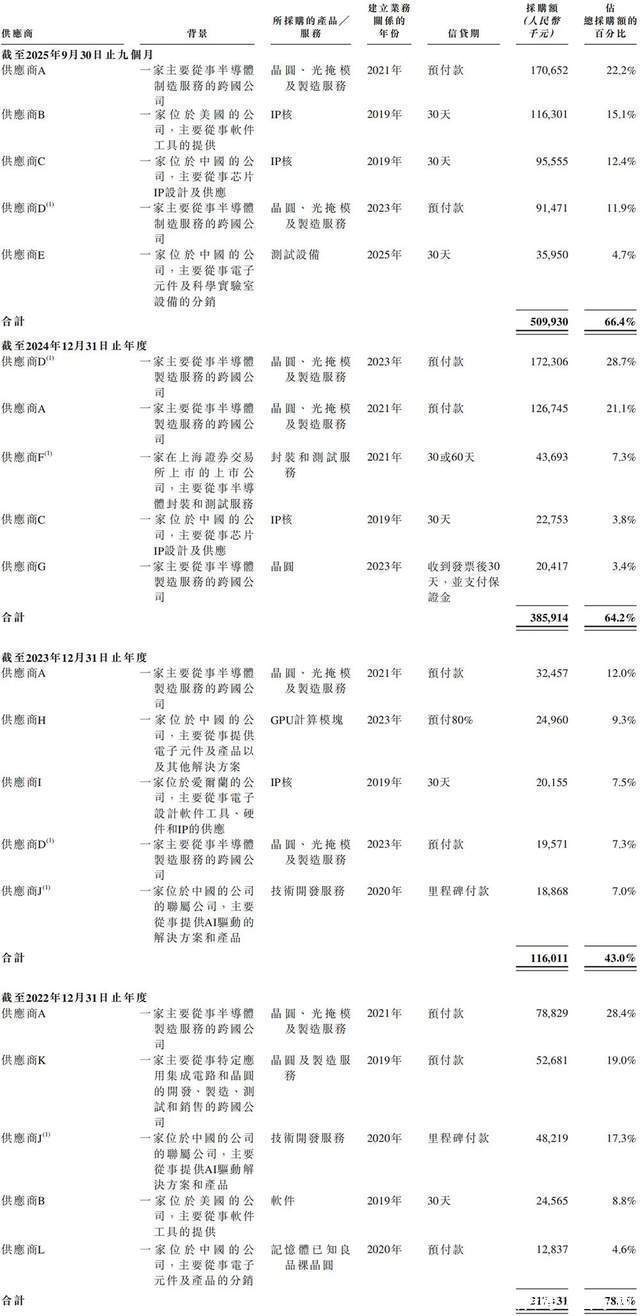 同期,爱芯元智向前五大供应商的采购额分别占总采购额的78.1%、43.0%、64.2%、66.4%。