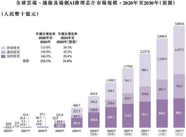 结语:AI推理芯片竞争激烈,爱芯元智拟拓展具身智能机器人应用场景根据招股书,AI推理芯片行业竞争十分激烈并快速演进。全球AI推理芯片市场规模由2020年的209亿元增至2024年的6067亿元,年复合增长率为132.1%,预计2030年将达到3万亿元,2024年至2030年的年复合增长率为31.0%。