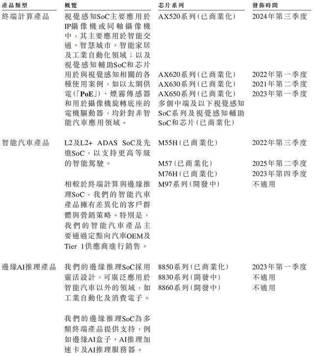 截至2025年9月30日,爱芯元智已独立开发五代SoC并实现其商业化,涵盖数十种类型,已在视觉终端计算、智能汽车和边缘AI推理应用中实现大规模生产;累计交付的SoC超过1.65亿颗。