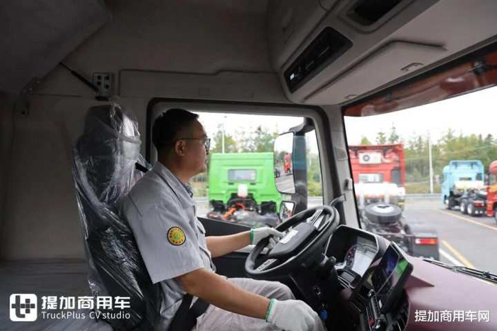 在试车老师的带领下,我感受了车辆的加速、过弯、特殊路况下的动态表现,其实对于500马力的手动挡空车头来说,提速真的是不在话下,加上解放动力发动机自身瞬态响应快和低扭强大的特点,空车加速到80km/h轻轻松松,这个表现应用在重车当中也是非常棒的,基本上红绿灯起步不拖泥带水,还有一个好处就是低速扭矩大,驾驶员起步不需要半联动,对离合器也是一种保护。