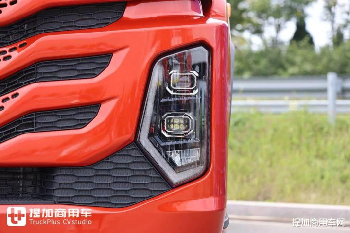 鹰驰采用一体式大灯,鹰之爪,大灯造型犹如收拢的鹰爪,蓄力待发。大灯内部全部采用LED光源,远近光灯带有透镜,最下方为雾灯,这样的照明配置在山西国道排位赛上,和对面的远光硬碰硬那是没有一点压力。