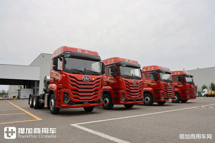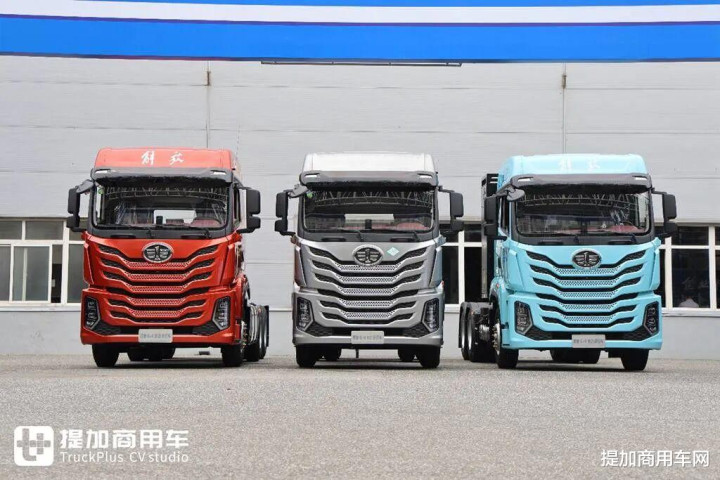 布局的动力中,燃油车型采用解放动力6DM2 490马力和6DM3 520马力发动机,燃气车型采用6SM6 506马力和6SM7 536马力发动机。电动重卡方面,布局400kwh——452kwh,有充电和换电两种方式。