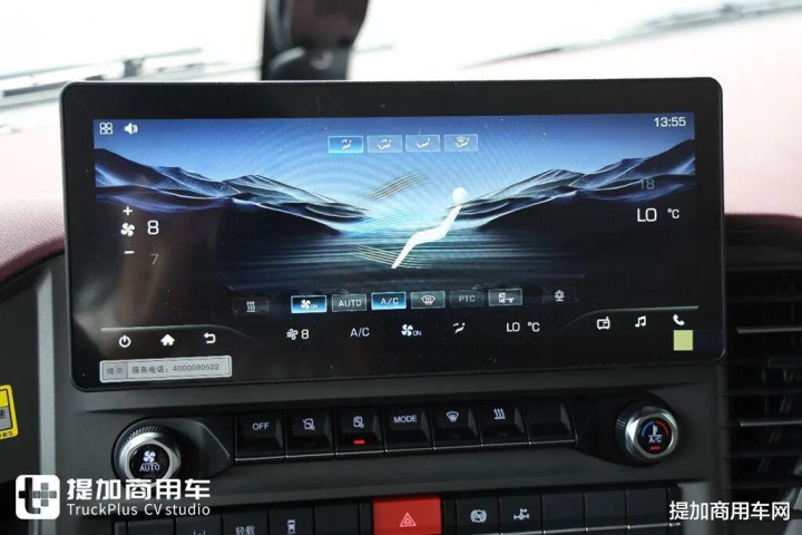 原厂标配液晶车机大屏,车机UI简洁易操作,内部集成蓝牙、地图、APP生态、空调控制等功能。值得一提的是,解放鹰驰采用自动空调,驾驶员不需要在行车过程中频繁调节温度,只需设定好想要的温度,空调系统便可以为驾驶室自动恒温。